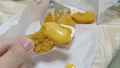 クチナシを入れて茹でた効果でそれぞれ若干色が黄色くなりましたが、その中でも里むすめの色が鮮明でキレイな黄色になりました。